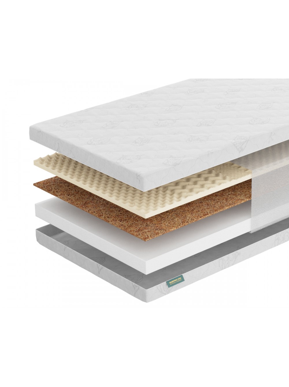 2. Латексированная кокосовая койра (2см) Кокосовая койра - 100% натуральный материал с уникальными свойствами. Койра, скрепленная натуральным латексом, дает объемную упругую воздухопроницаемую структуру. Такой материал используется в моделях, предназначенных для любителей более жесткого и упругого спального места. Естественные вентиляционные качества, эластичность, прочность, упругость, гигиеничность и антиаллергенность, наряду с очень долгим сроком службы, делают этот материал идеальным для наполнения матраса.